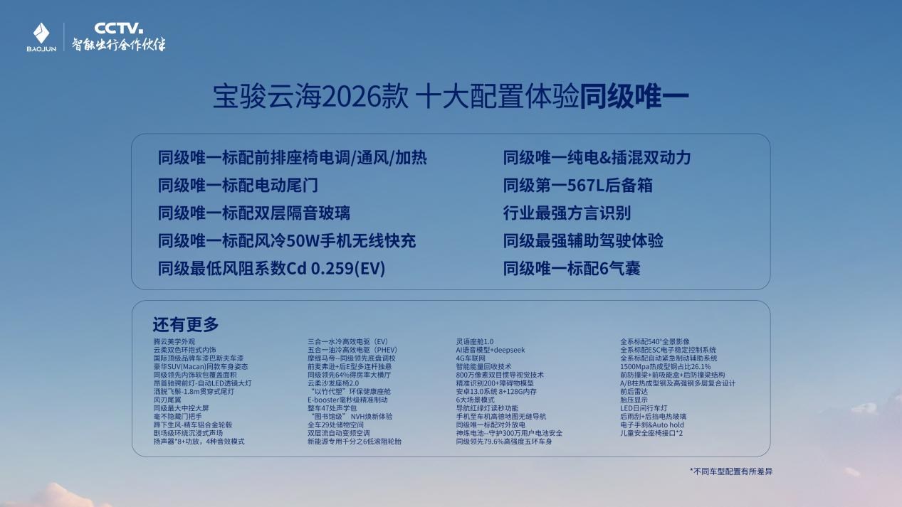 9月13日,“龔赴云海 與JUN同行——寶駿云海私享會(huì)”圓滿(mǎn)落幕。此次,寶駿汽車(chē)攜手全球品牌代言人龔俊,共同解讀寶駿云海2026款及俊雅版的產(chǎn)品硬實(shí)力。同時(shí),正式公布了分階段推進(jìn)的OTA升級(jí)計(jì)劃,10月31日前將為旗下五款車(chē)型陸續(xù)推送最新靈語(yǔ)座艙體驗(yàn),并將在今年年底行業(yè)首發(fā)10萬(wàn)級(jí)城市領(lǐng)航輔助功能,讓老車(chē)主也能擁有“常用常新”的智能體驗(yàn)。